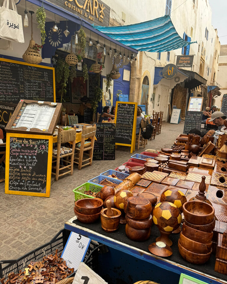 Ad Essaouira l’artigianato è semplicemente splendido, ceramiche, legno lavorato e tessuti ricchi di colori che rispecchiano la Città